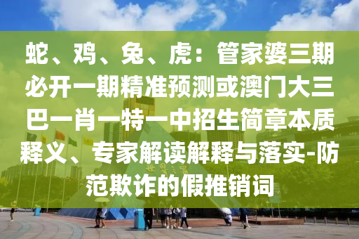 蛇、鸡、兔、虎”与管家婆三期必开一期精准预测或澳门大三巴一肖一特一中招生简章——本质释义、专家解读解释与防范欺诈的假推销词