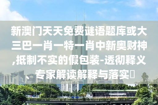 新澳门天天免费谜语题库或大三巴一肖一特一肖中新奥财神:透彻释义、专家解读解释与落实