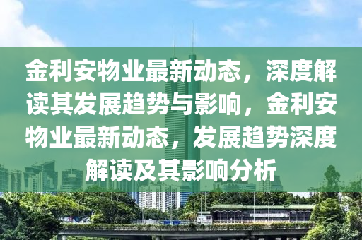 随着城市建设的不断推进,物业管理行业也在迅速发展,作为业内颇具影响力的金利安物业,其最新动态备受关注,本文将从新闻报道的视角出发,结合个人见解,对金利安物业的最新消息进行深入剖析。