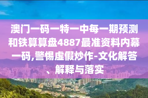 关于澳门一码一特一中每一期预测和铁算算盘4887最准资料内幕一码文化,我们需要进行解答、解释与落实,同时提醒公众警惕虚假宣传与炒作。
