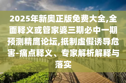 2025年新奥正版免费大全,全面释义或管家婆三期必中一期预测精鹰论坛,抵制虚假诱导危害-痛点释义、专家解析解释与落实