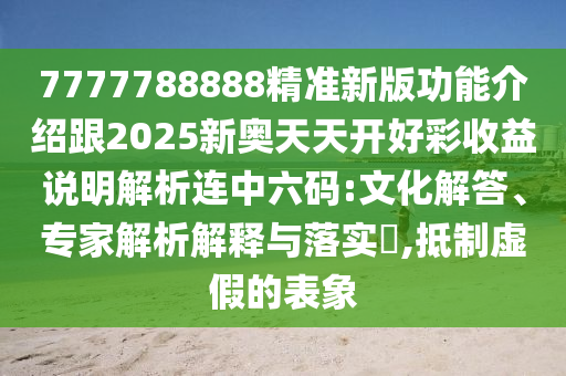 关于关键词“7777788888精准新版功能介绍、2025新奥天天开好彩收益说明解析连中六码”,以及与之相关的文化解答、专家解析解释与落实,抵制虚假的表象,以下是对这些内容的全面释义、解释与落实。