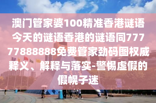 关于澳门管家婆100精准香港谜语今天的谜语香港的谜语同77777888888免费管家劲码图的全面释义、专家解读与落实及警惕虚假宣传